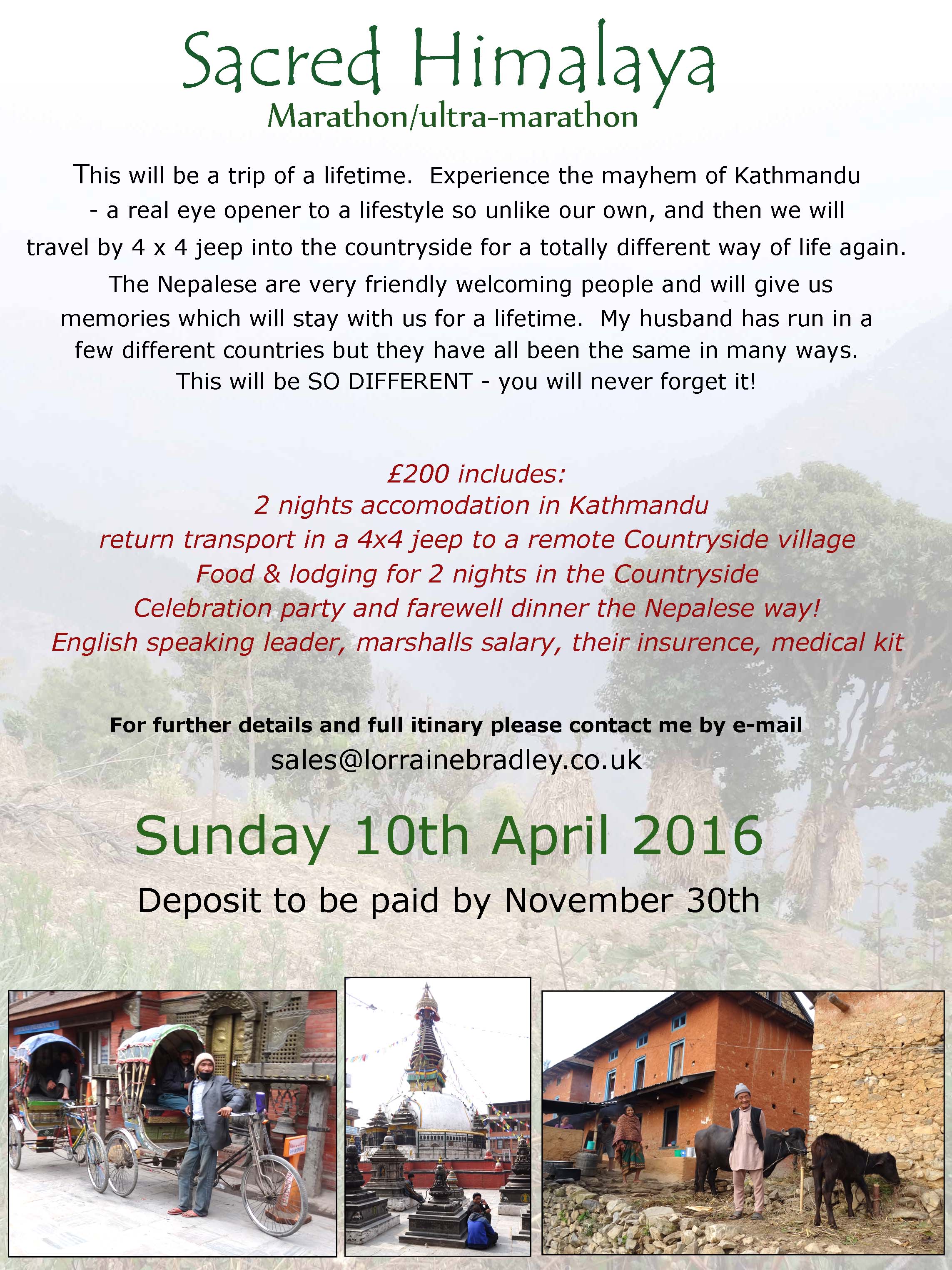 So the 10th April 2016 sees a marathon and ultra-marathon take place hosted by Binay's village. Lorraine told us, "I would love to help them and show English people how happy you can be when you have nothing except beautiful countryside and a non-materialistic way of life. It is so different and eye opening."